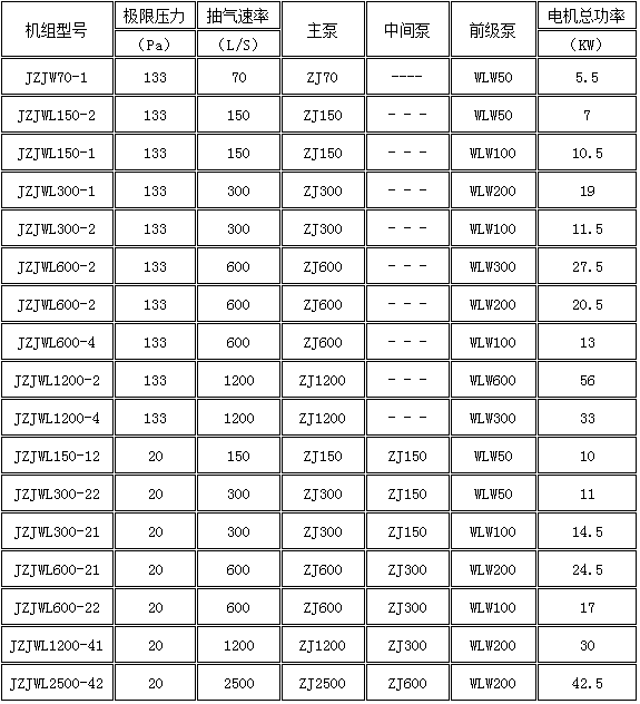 1、JZJW系列罗茨往复机组技术规格表格为推荐标准罗茨往复机组系列,也可根据用户的使用条件设计罗茨-往复机组、罗茨-罗茨-往复机组以及其它特殊要求异型设计。